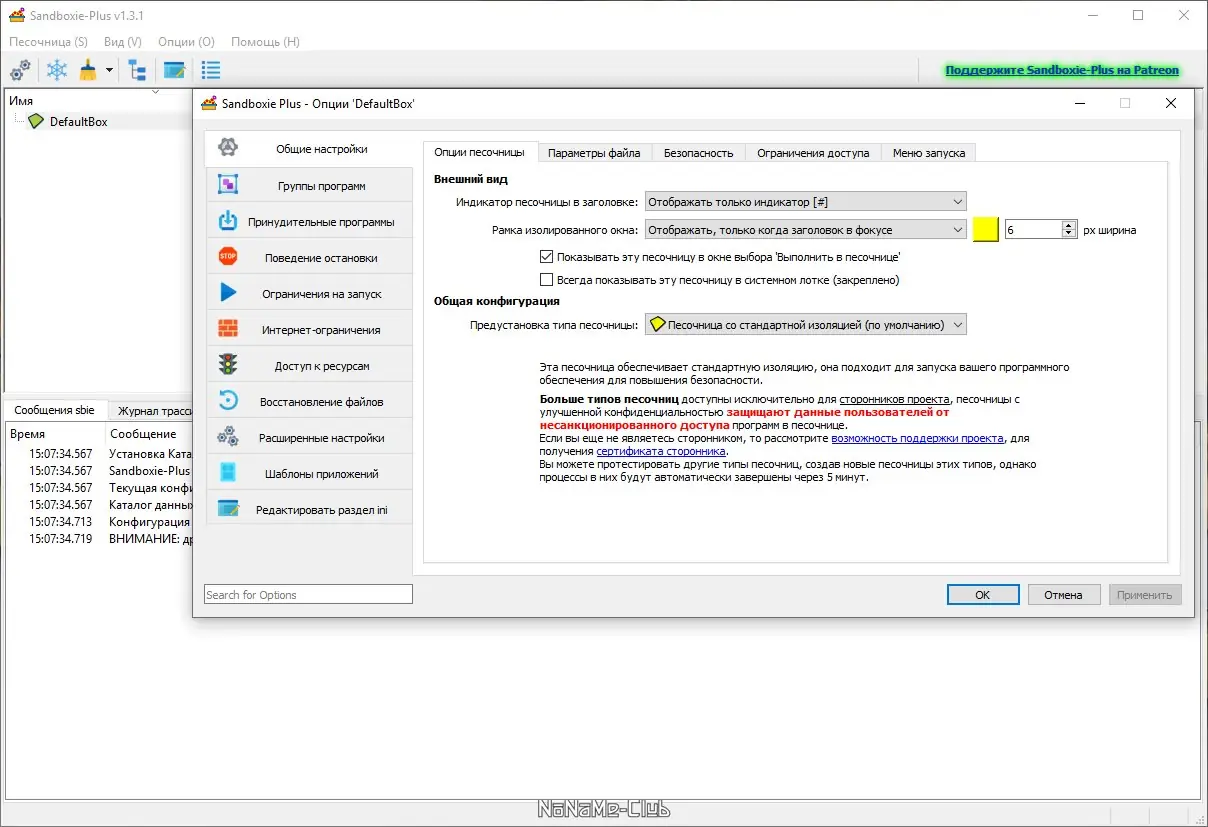 Работа с Sandboxie