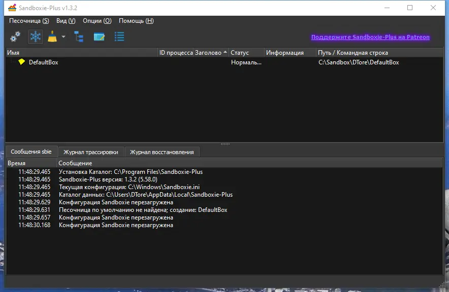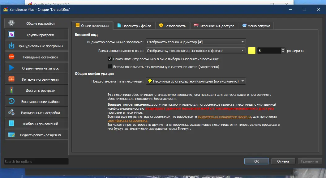 Работа с Sandboxie