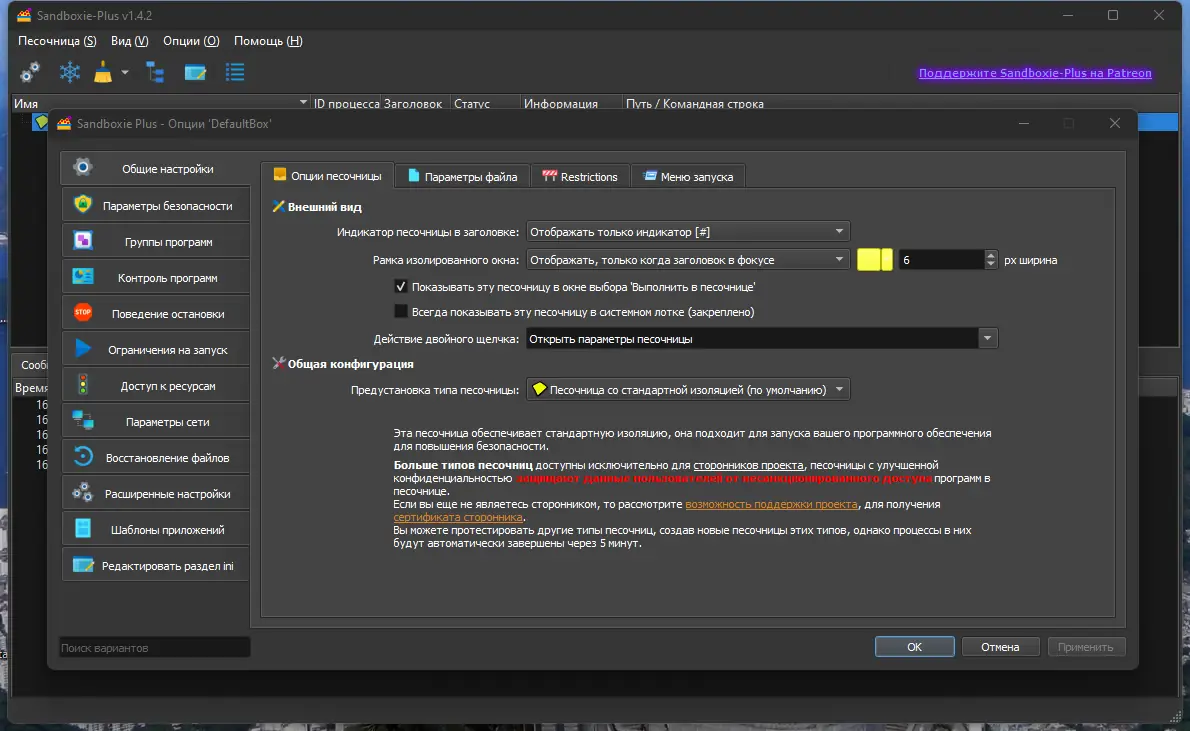 Программа Sandboxie создаёт защищённое окружение, в котором исполняются сторонние приложения, не затрагивая реальную файловую систему и реестр операционной системы. Каждый запущенный процесс работает в виртуальном пространстве, известном как песочница. Все изменения, произведённые в этой среде, остаются внутри неё и могут быть удалены одним кликом. Это особенно полезно при тестировании новых программ, открытии подозрительных вложений или работе с ненадёжными сайтами.