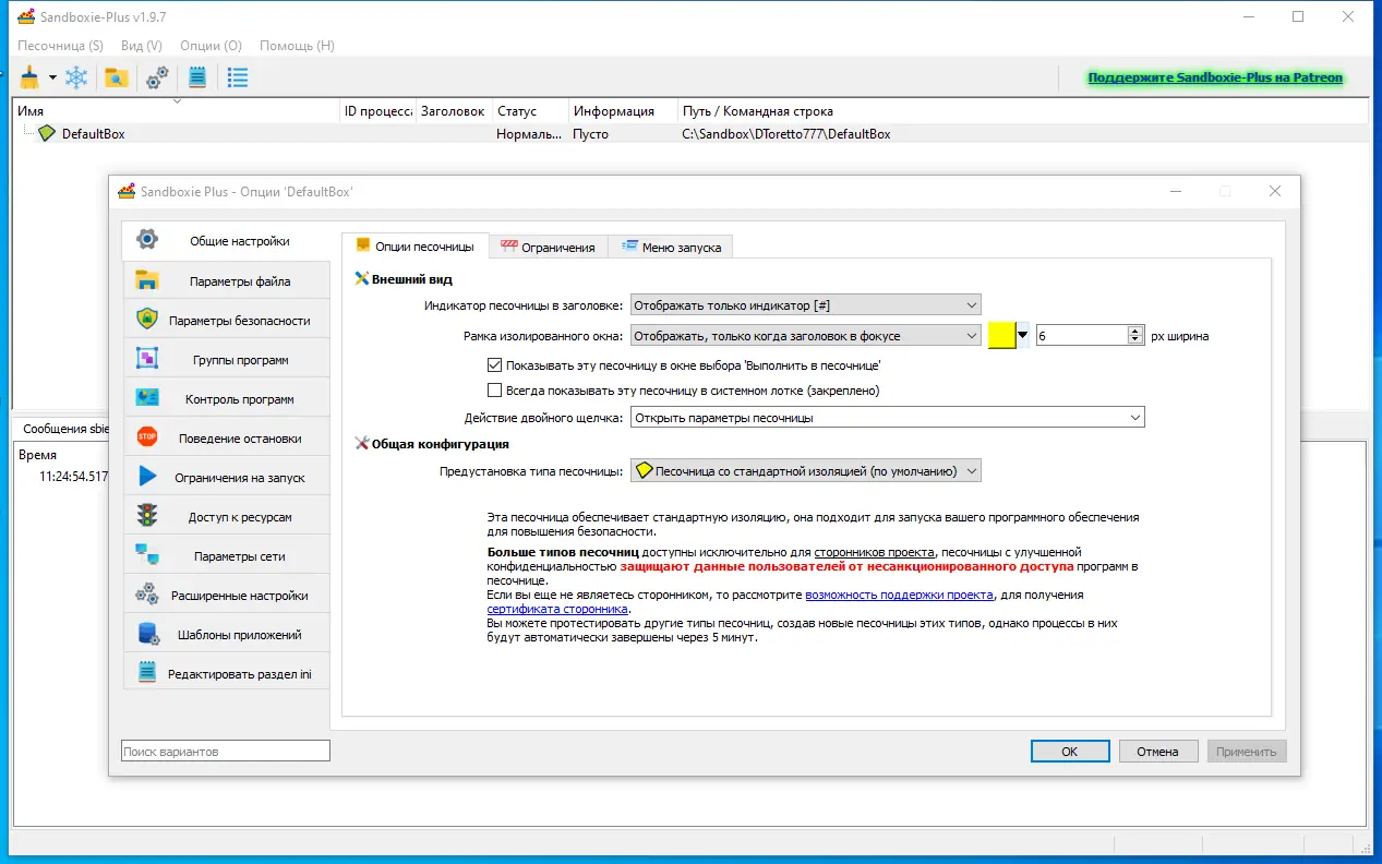 Песочница Sandboxie plus — это инструмент для безопасного запуска приложений в изолированной среде, защищая основную систему от нежелательных изменений. Программа позволяет изолировать процессы, предотвращая запись данных на жесткий диск напрямую, что особенно полезно при тестировании непроверенного ПО или работе в браузере.
