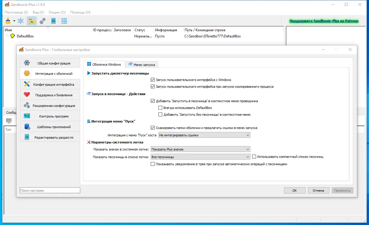 Работа с Sandboxie