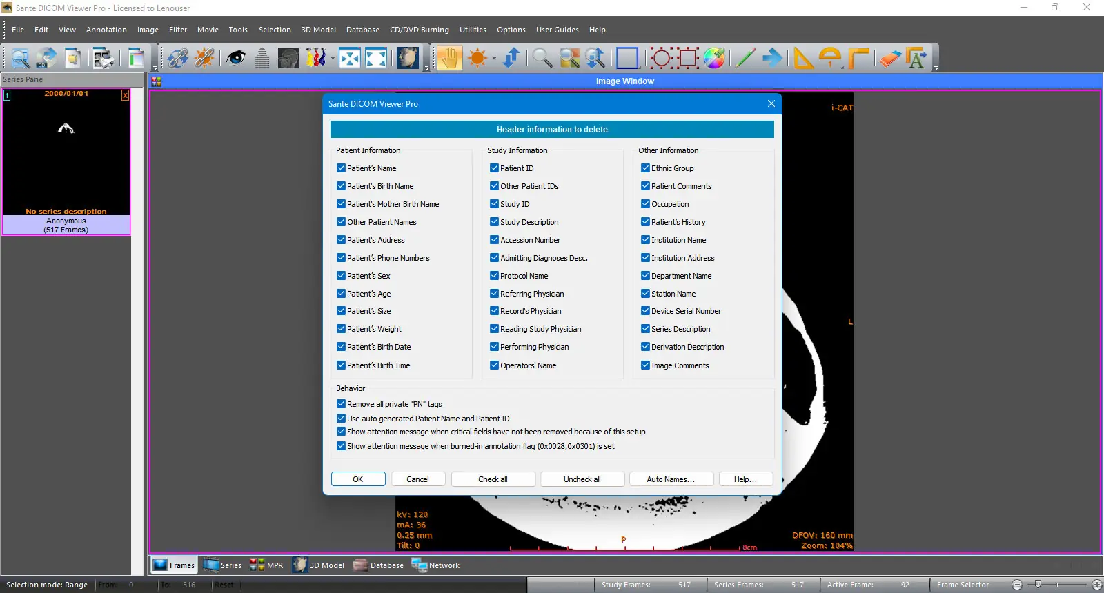 Sante DICOM Viewer Pro — это полнофункциональная программа для просмотра, обработки и анализа медицинских изображений в формате DICOM. Разработанная с нуля без использования сторонних библиотек, она предлагает профессиональные инструменты для 2D и 3D визуализации, анонимизации данных, конвертации и передачи изображений через PACS. Программа поддерживает широкий спектр модальностей и форматов, включая CT, MR, US, MG и другие, а также работает с JPEG, PNG, TIFF и DICOMDIR.