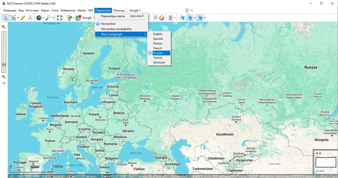После запуска SAS.Планета пользователь получает доступ к интерактивной карте с возможностью выбора активного слоя. Для загрузки участка карты достаточно выделить нужную область и запустить процесс кэширования. Программа автоматически определяет оптимальный масштаб и источник данных. Поддержка KML-файлов позволяет импортировать готовые маршруты и метки, а встроенные инструменты — создавать собственные объекты, сохранять точки интереса и настраивать их отображение. Работа с GPS-приёмником осуществляется через COM-порт или Bluetooth, обеспечивая точное позиционирование в реальном времени.
