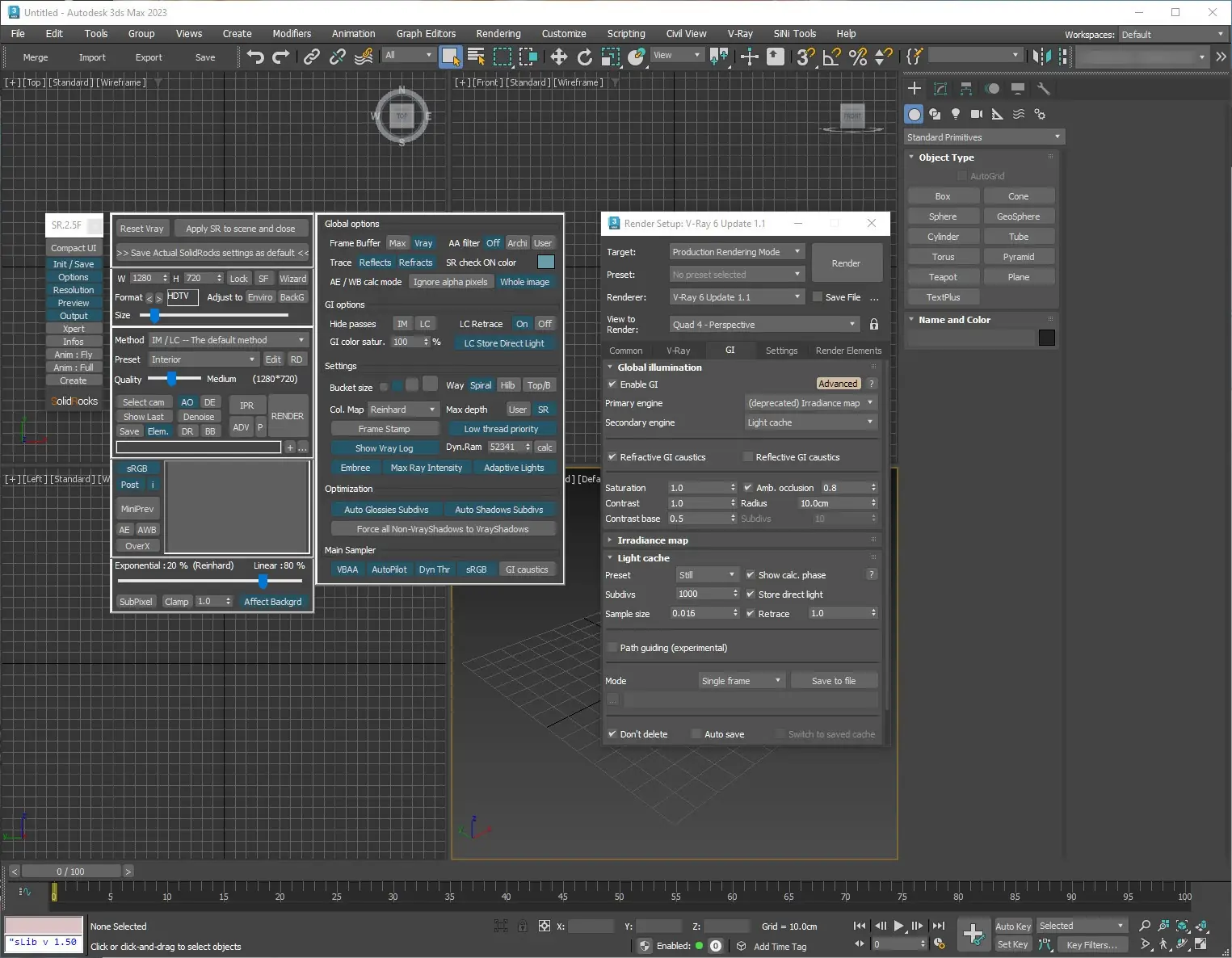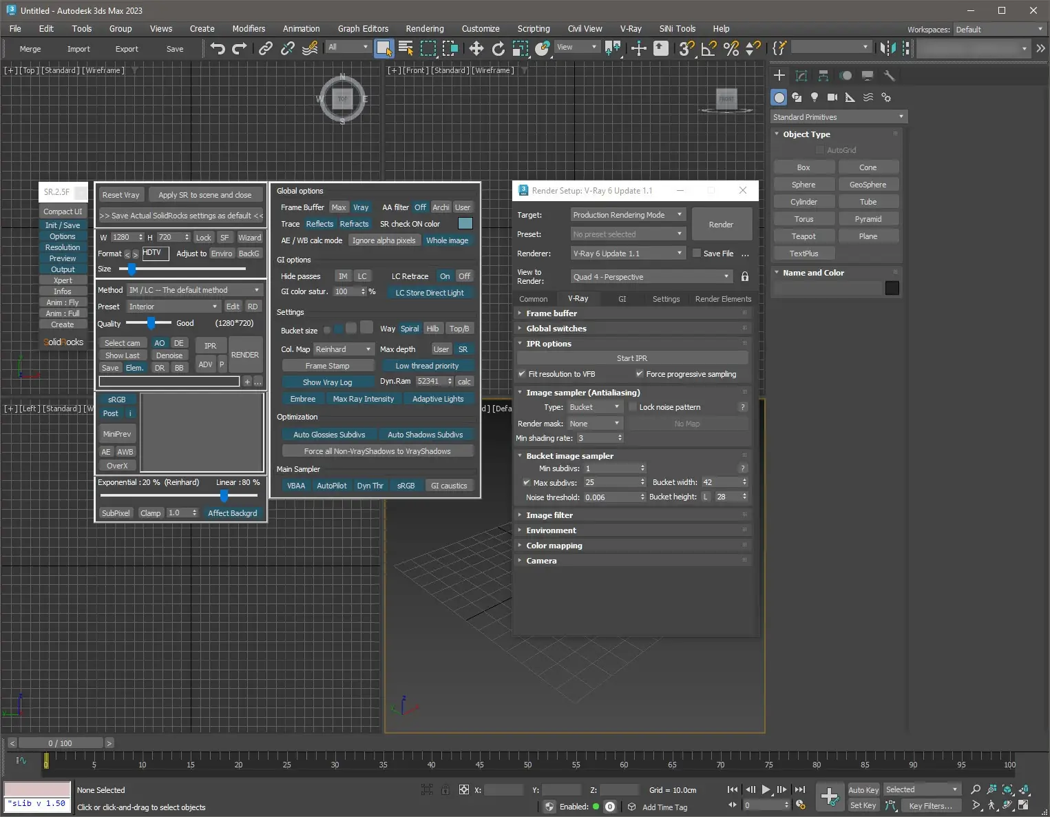 SolidRocks — это инструмент для автоматизации настройки визуализации в 3D-сцене с использованием движка V-Ray. Программа упрощает процесс рендеринга, позволяя пользователю сосредоточиться на творческой части, а не на технических деталях. Достаточно выбрать нужное разрешение и качество, а все остальные параметры будут настроены автоматически. Это делает процесс визуализации доступным даже для новичков, не обладающих глубокими знаниями в работе с V-Ray.