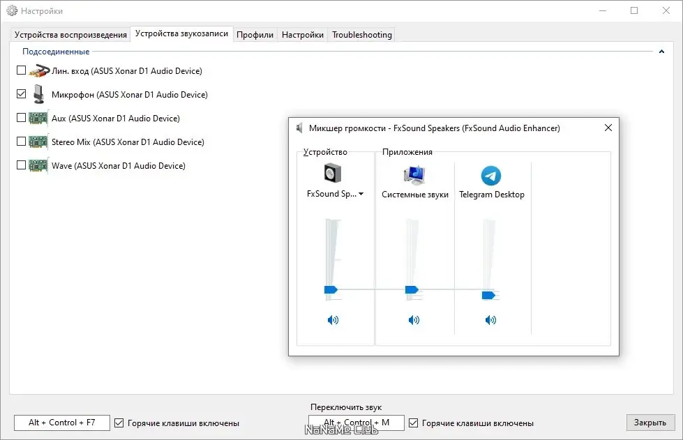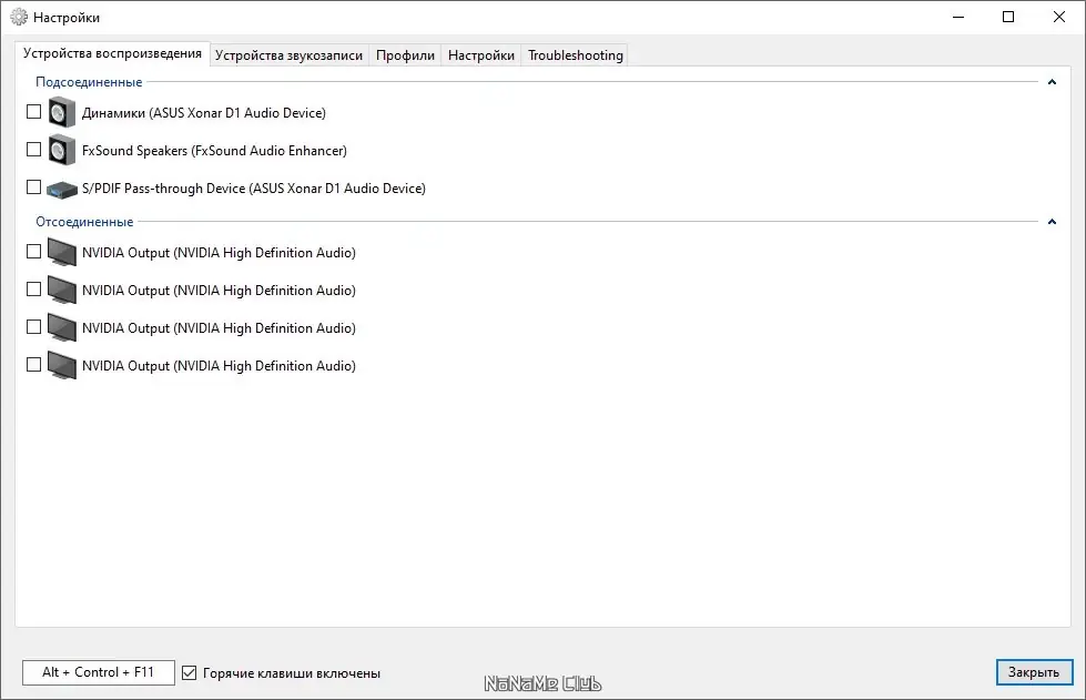 - Поддержка горячих клавиш для переключения между устройствами вывода и ввода звука