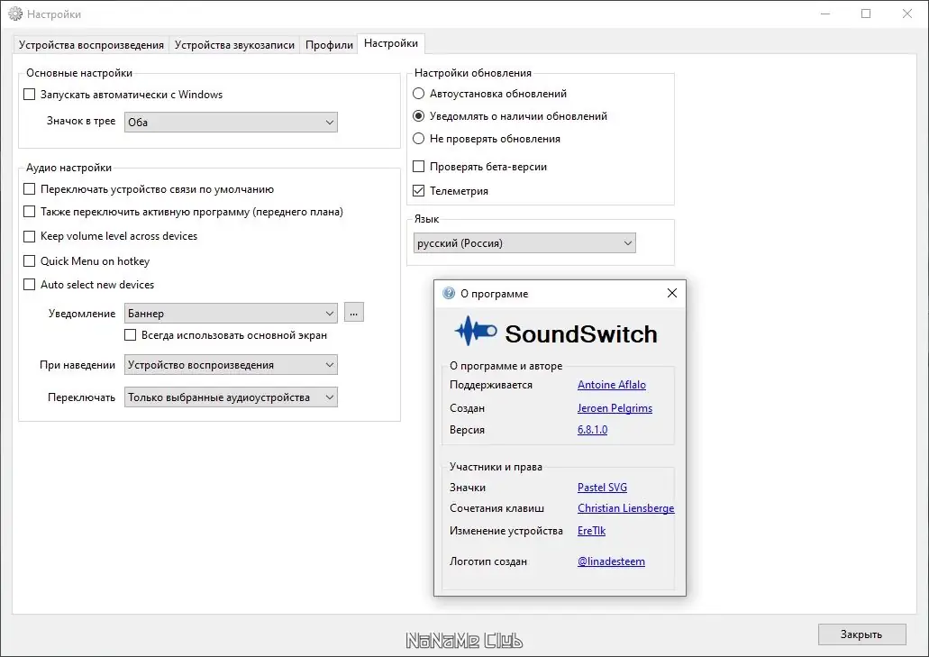 SoundSwitch — бесплатная утилита для быстрого переключения между аудиоустройствами на компьютере. Программа заменяет громоздкую ручную настройку звука через системные меню удобными горячими клавишами и визуальными уведомлениями.