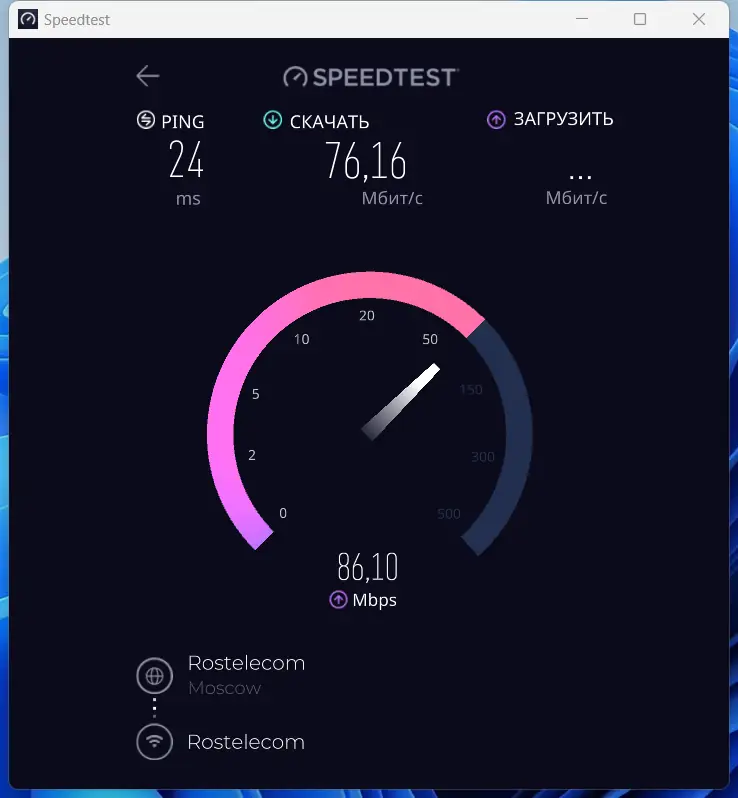 - Для получения наиболее точных результатов требуется стабильное подключение без фоновых загрузок.