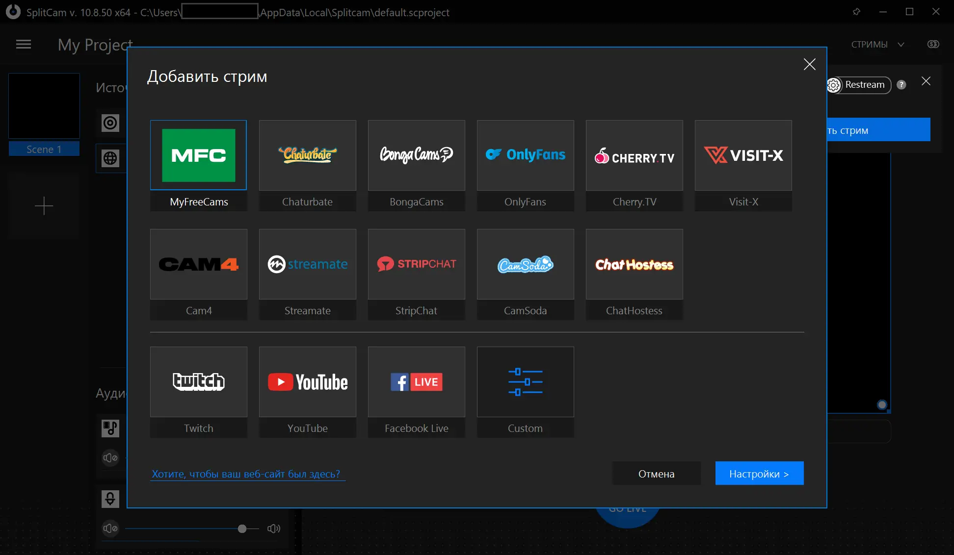 - SplitCam совместима с такими платформами, как Justin.tv, Ustream, Livestream и TinyChat, позволяя запускать стримы за несколько кликов.