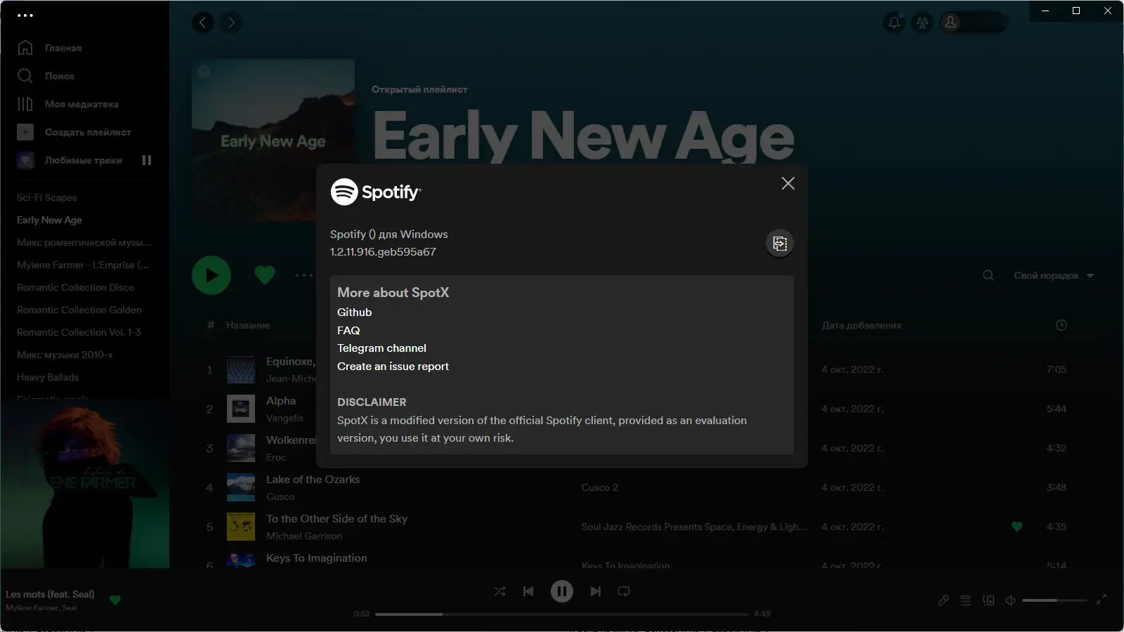 Spotify — это современный потоковый музыкальный плеер с обширным каталогом, поддержкой миллионов треков и возможностью прослушивания как онлайн, так и локальных файлов. Программа предлагает интуитивный интерфейс, персонализированные плейлисты, радиостанции по жанрам и интеграцию с внешними сервисами. Благодаря модификациям, доступна версия, работающая без рекламы и с расширенными возможностями.