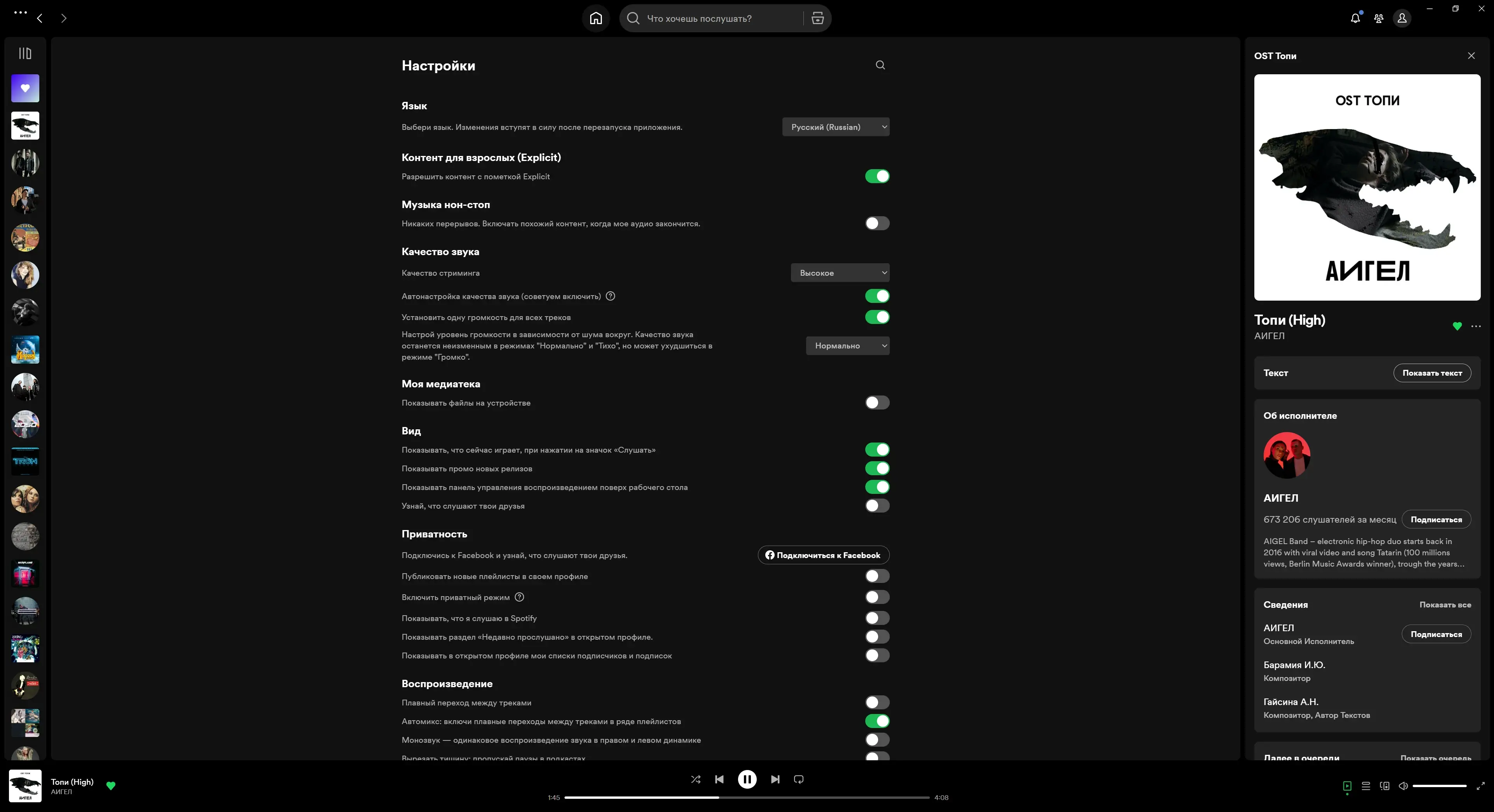 Spotify — это современный музыкальный плеер с доступом к обширному каталогу треков, радиостанций и плейлистов, работающий по принципу потокового воспроизведения. Программа поддерживает как онлайн-прослушивание, так и использование локальных файлов с жёстких и съёмных дисков, обеспечивая высокое качество звука и интуитивное управление.