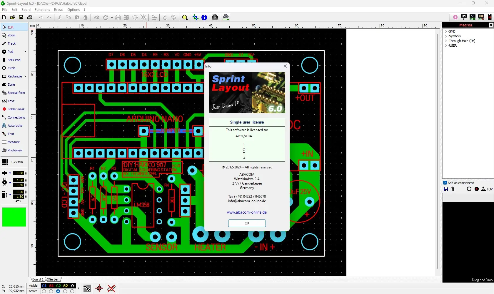 Sprint-Layout 6.0 позиционируется как быстрая и простая система автоматизированного проектирования, ориентированная на создание печатных плат с минимальными временными затратами. Интерфейс интуитивно понятен, а рабочий процесс оптимизирован для максимальной производительности. Программа поддерживает до семи слоёв, что позволяет реализовывать как простые, так и относительно сложные схемы.