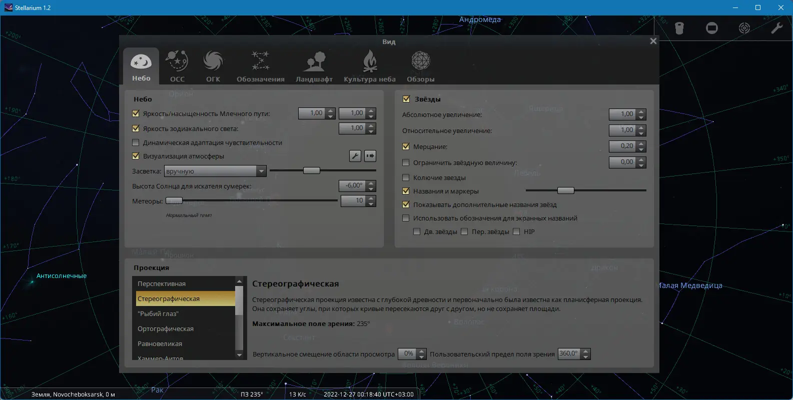 - Программа поддерживает 3D-ландшафты, настраиваемые темы и проекции, включая режим «рыбий глаз» для планетариев.