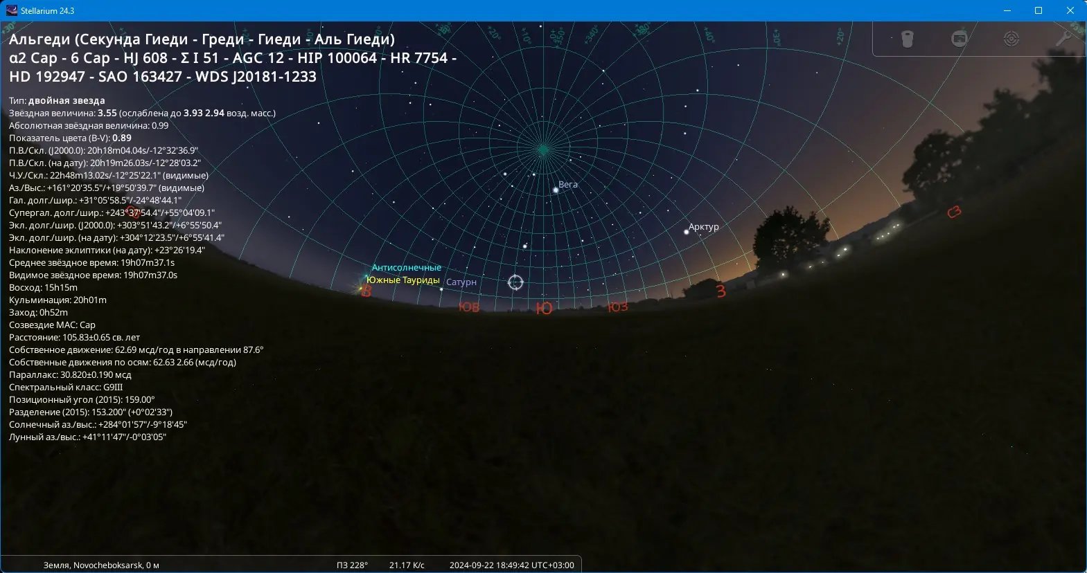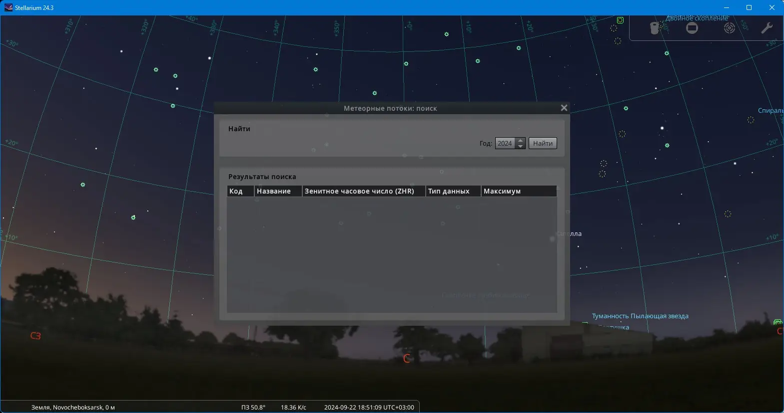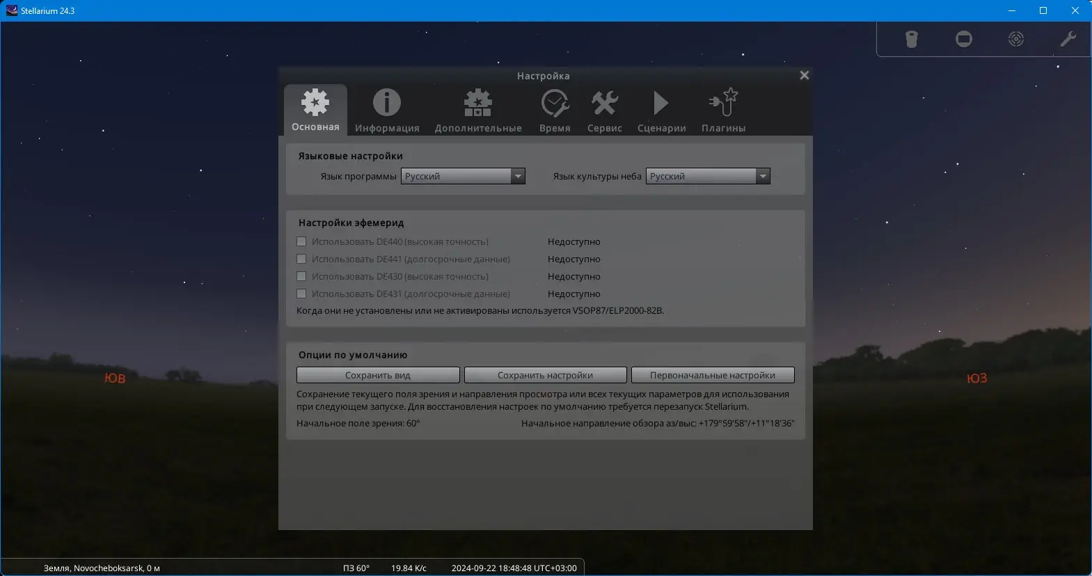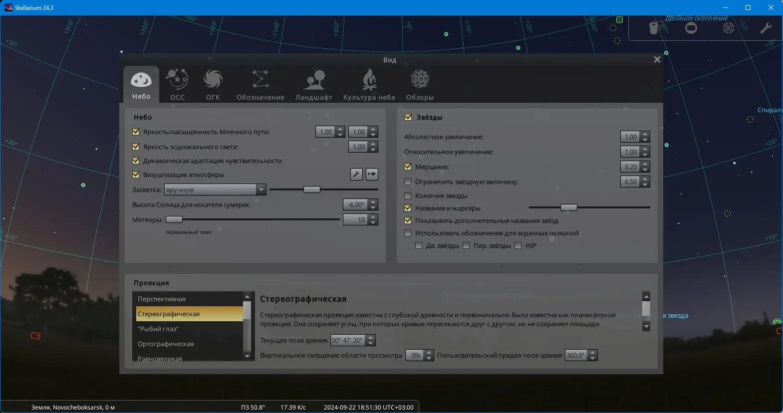 Работа с Stellarium