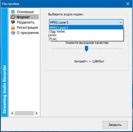 - Автоматическое распознавание формата и параметров аудиопотока для оптимального качества записи.