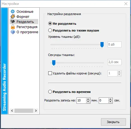 - Функция умного разделения треков с возможностью удаления рекламных вставок.