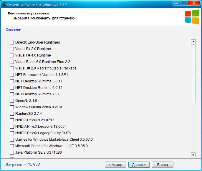 System software представляет собой универсальный установщик, объединяющий множество распространяемых пакетов, без которых невозможен запуск большинства современных игр и программ. Утилита автоматически подбирает необходимые компоненты в зависимости от версии и разрядности операционной системы, что избавляет пользователя от ручного поиска и установки каждого элемента. Это особенно полезно после чистовой установки Windows, когда отсутствуют ключевые библиотеки, вызывающие ошибки вида «Runtime Error» или «missing .dll».