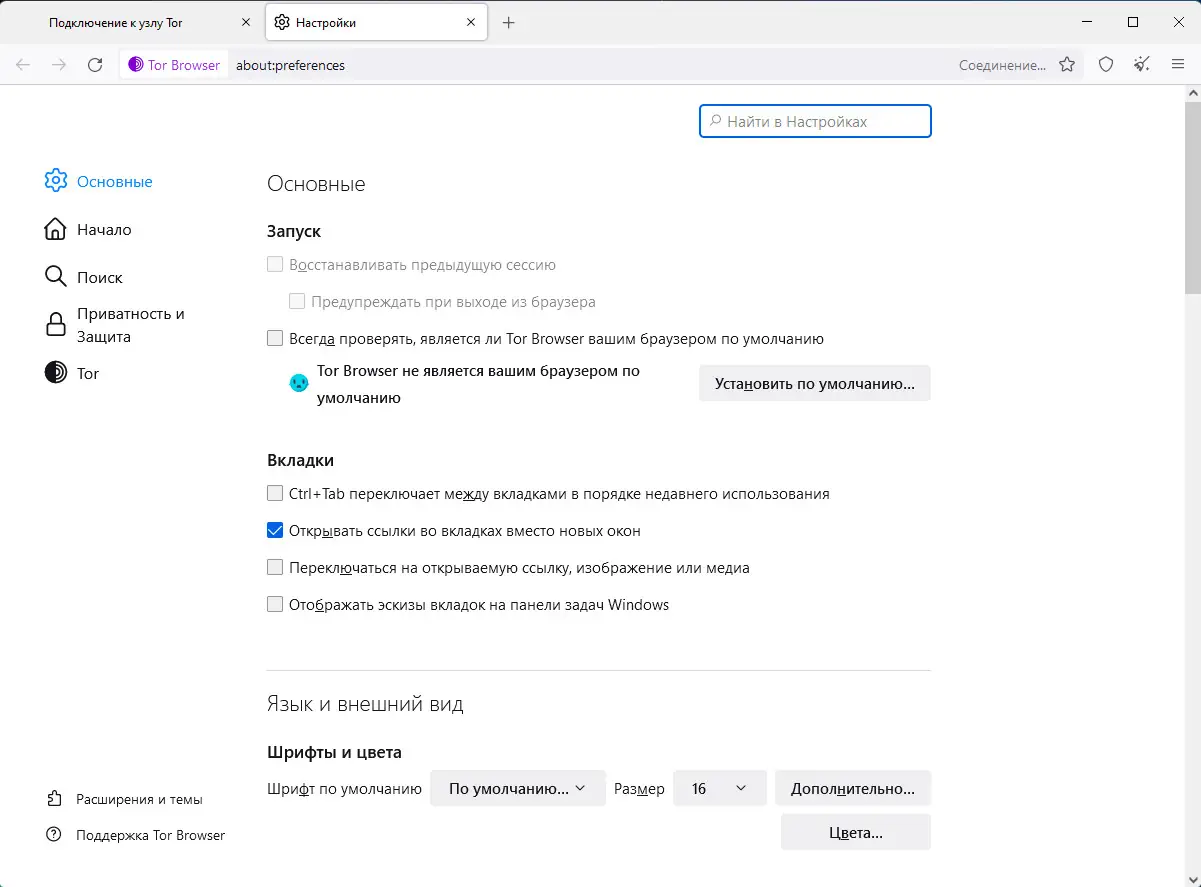 После распаковки архива необходимо открыть папку Tor Browser и запустить исполняемый файл «Start Tor Browser.exe». Запускается управляющий модуль, который подключается к сети Tor и настраивает защищённое соединение. Как только подключение установлено, автоматически открывается окно браузера Firefox с пометкой «Tor включен» в правом нижнем углу интерфейса.