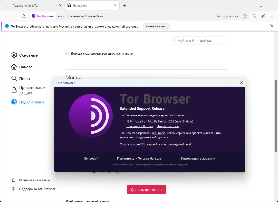 Для повышения шансов на подключение в условиях блокировок можно использовать мосты — специальные узлы, не внесённые в публичные списки.