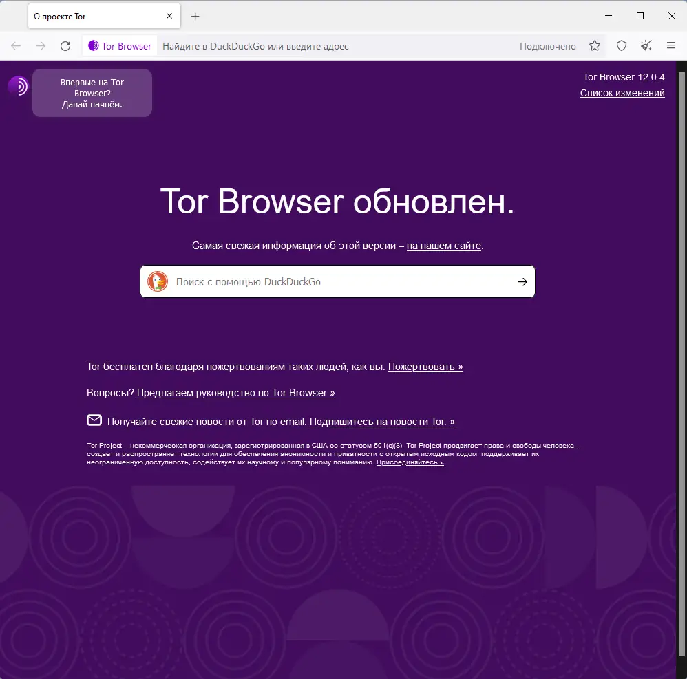 Tor Browser — это программный пакет для безопасного и анонимного серфинга в интернете, основанный на технологии маршрутизации трафика через распределённую сеть серверов. Приложение шифрует соединение и скрывает местоположение пользователя, защищая от слежки и анализа сетевой активности.