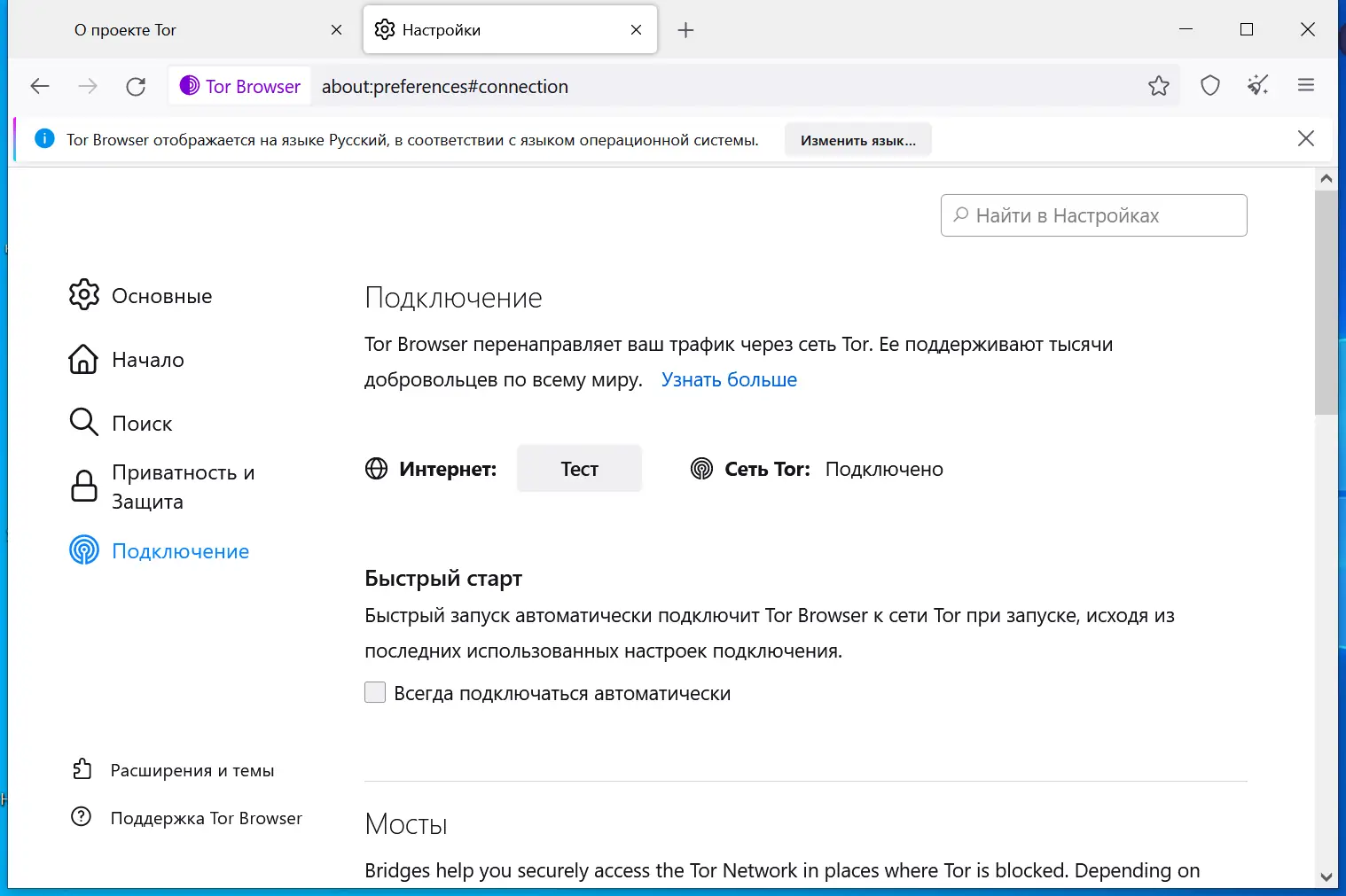 - Поддержка мостов, позволяющая подключаться к сети даже при блокировке официальных узлов.