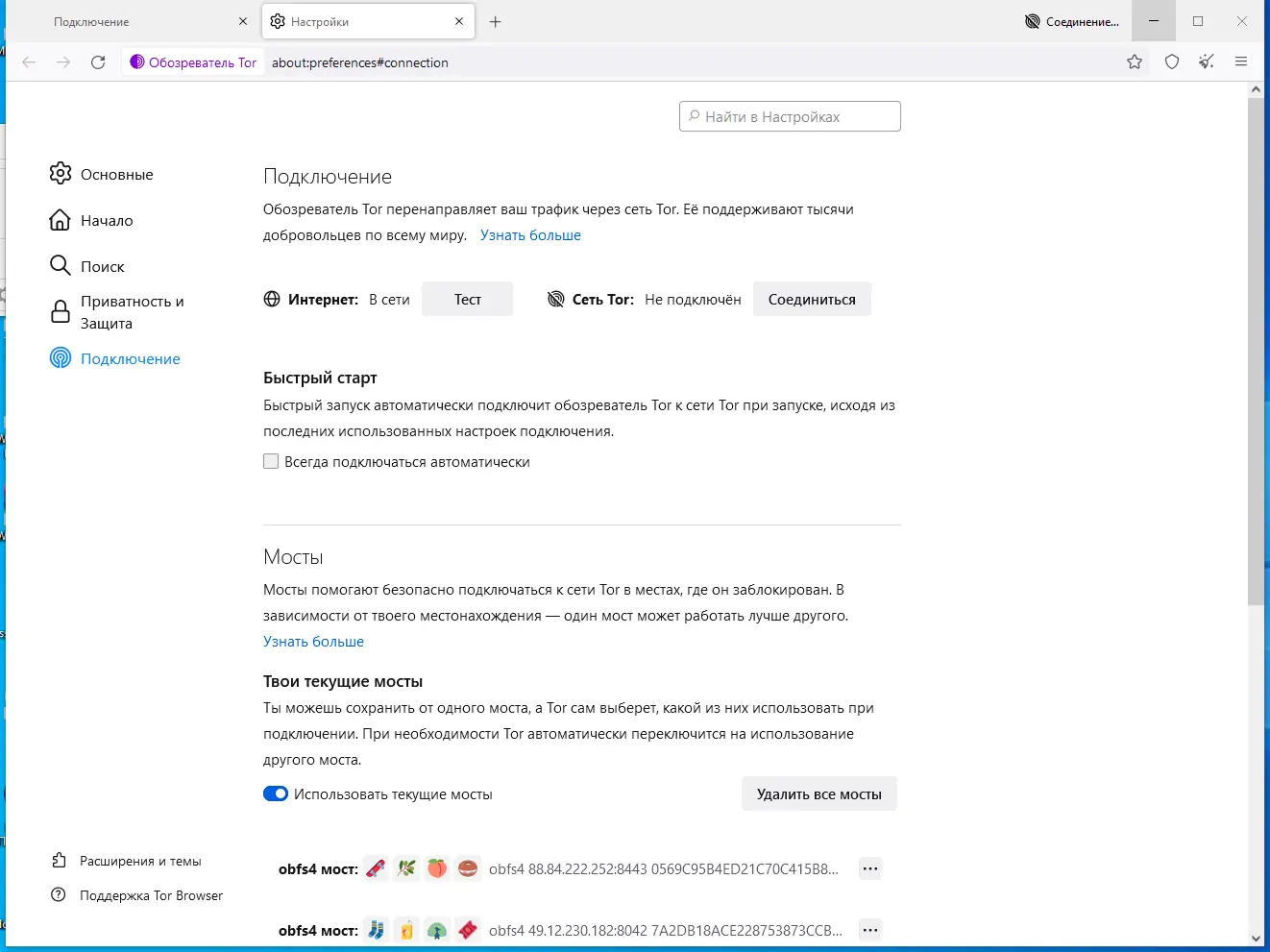- Поддержка мостов позволяет обходить цензуру в закрытых сетях