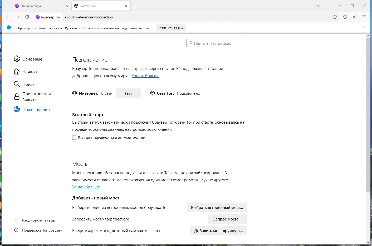 После распаковки архива необходимо открыть папку Tor Browser и запустить файл «Start Tor Browser.exe». После инициализации соединения с сетью Tor автоматически откроется окно браузера. Перед началом серфинга следует убедиться, что в интерфейсе отображается статус «Tor включен» — это гарантирует, что трафик проходит через защищённую сеть. Все действия в интернете должны выполняться строго в этом браузере, поскольку другие приложения, включая стандартный Firefox, не получают защиты от Tor.
