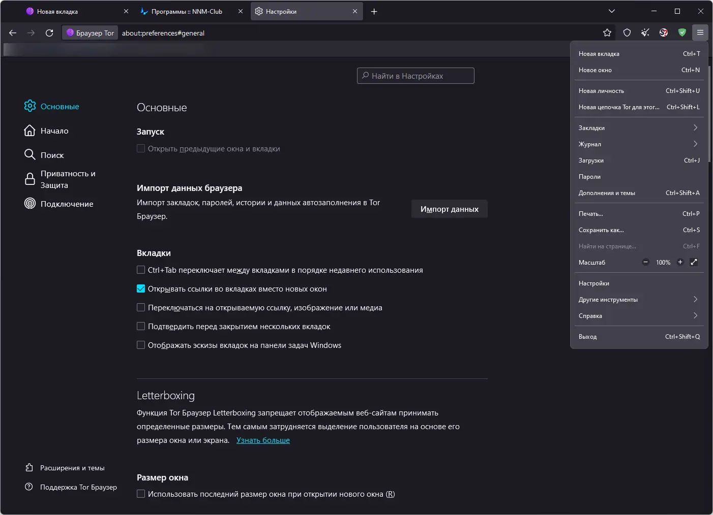 Работа с Tor Browser