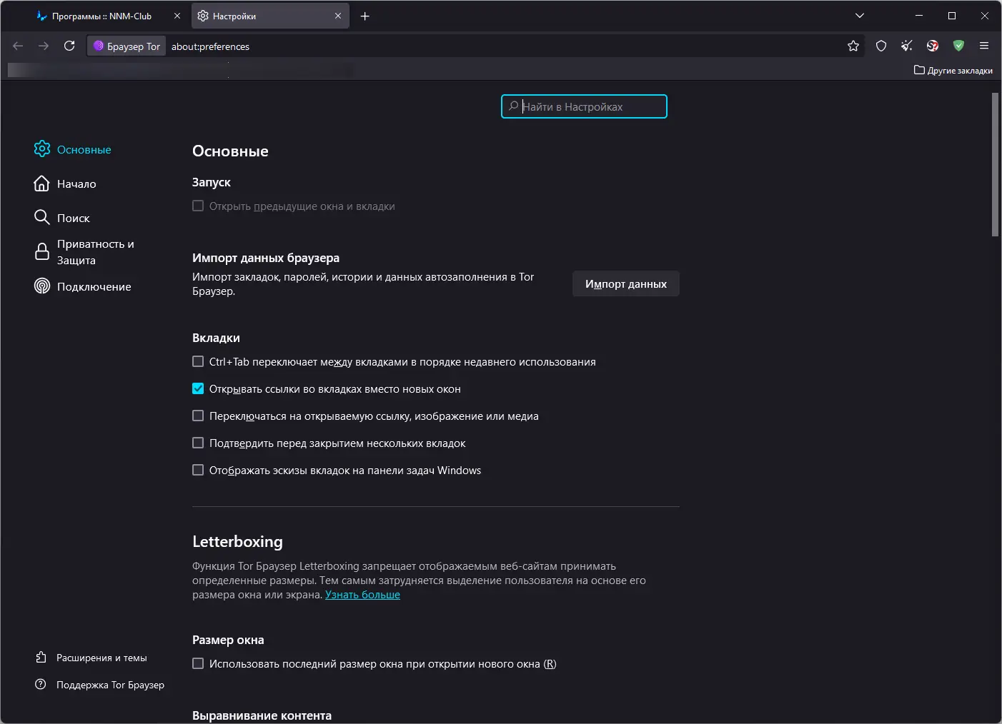 Работа с Tor Browser