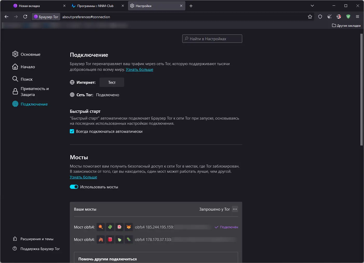 - Поддерживает работу с дополнительными средствами анонимизации, включая мосты, обходящие блокировки.