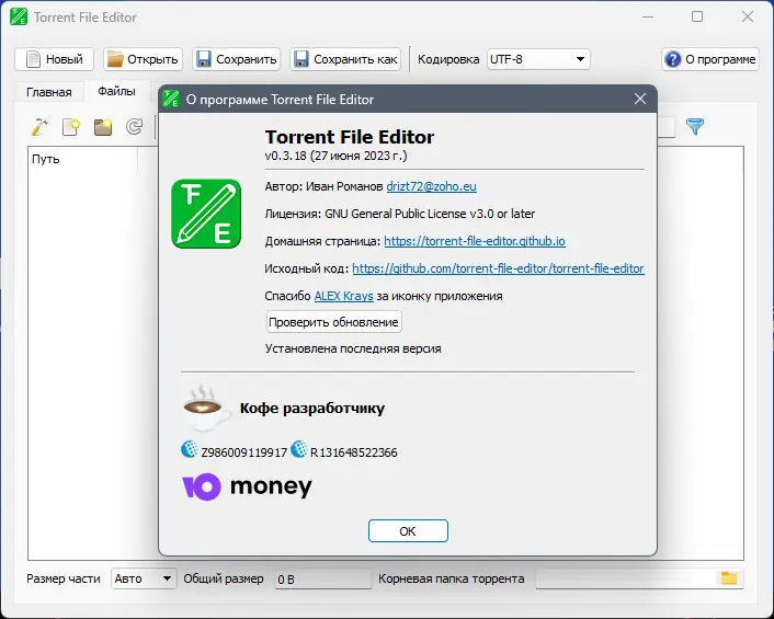 Torrent File Editor — кроссплатформенное приложение для создания и редактирования торрент-файлов и uTorrent .dat-файлов с современным интерфейсом и расширенными возможностями. Программа заменяет собой устаревшие инструменты, такие как BEncode Editor, предлагая более гибкий подход к работе с метаданными торрентов.