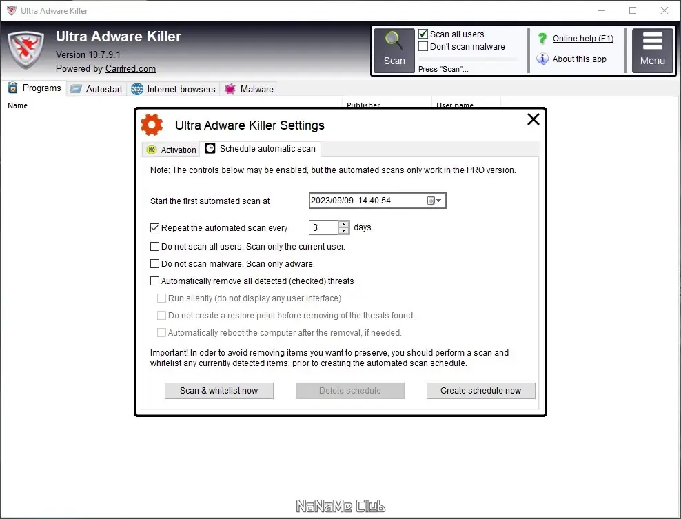 - Обнаруживает и удаляет рекламное программное обеспечение во всех профилях пользователей Windows