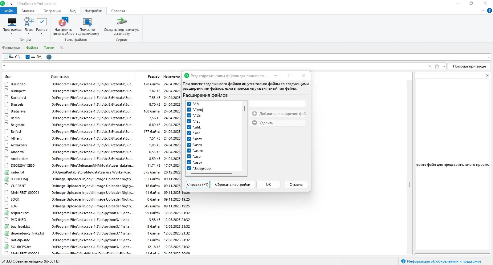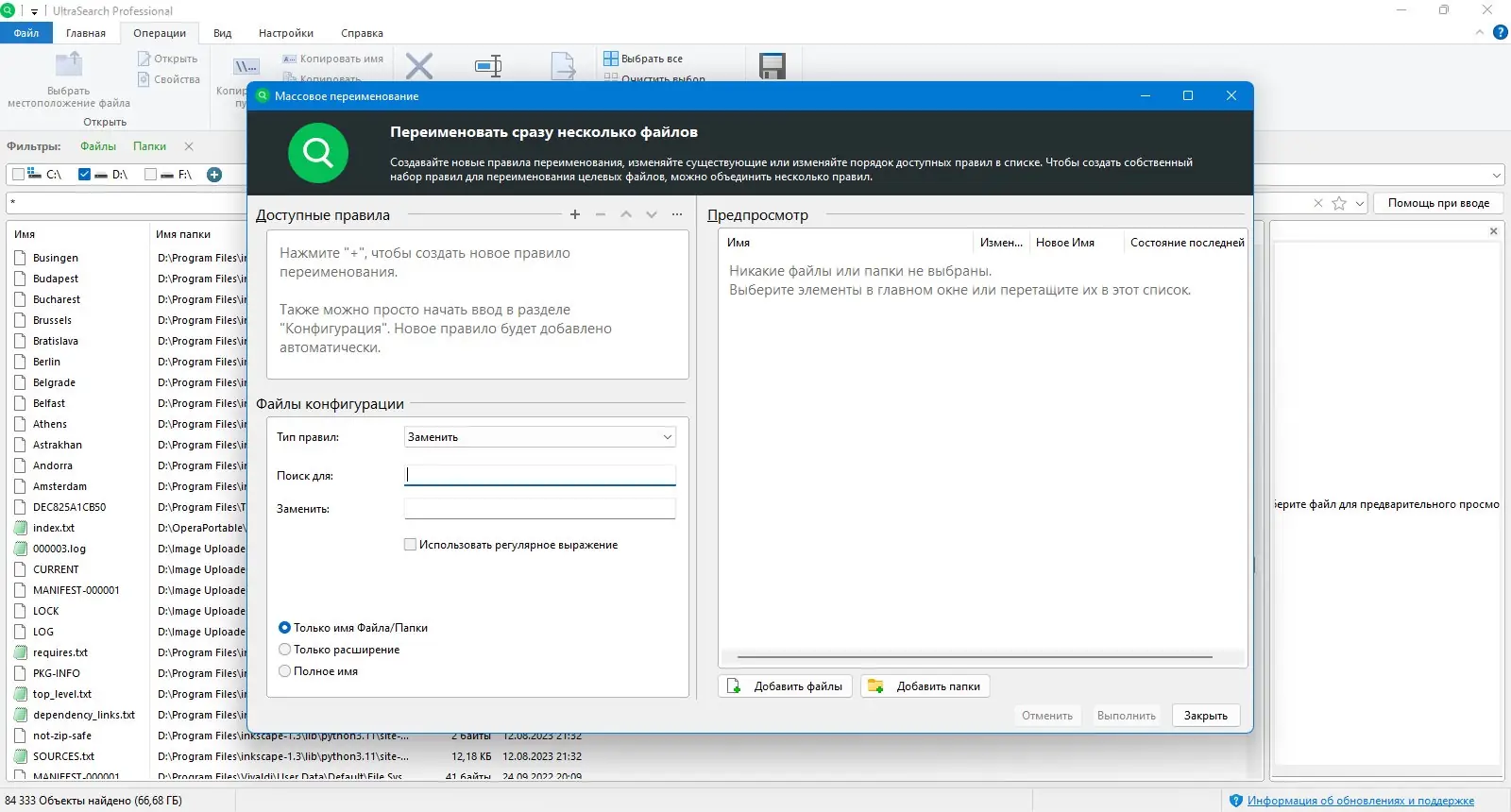 - Поддержка масок файлов, включая шаблоны вроде *.log, *.exe или *.txt, ускоряет фильтрацию результатов.