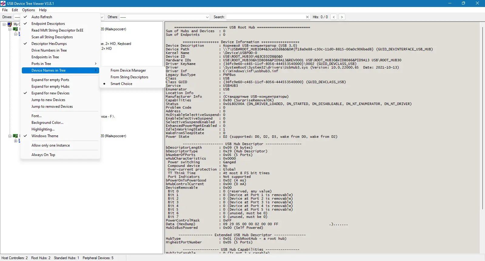 Описание USB Device Tree Viewer