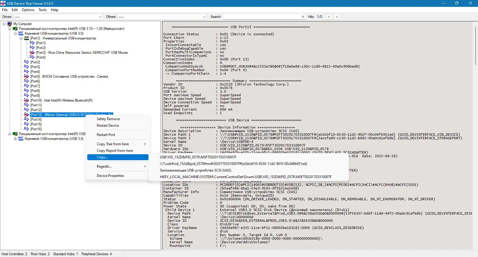 Как пользоваться USB Device Tree Viewer