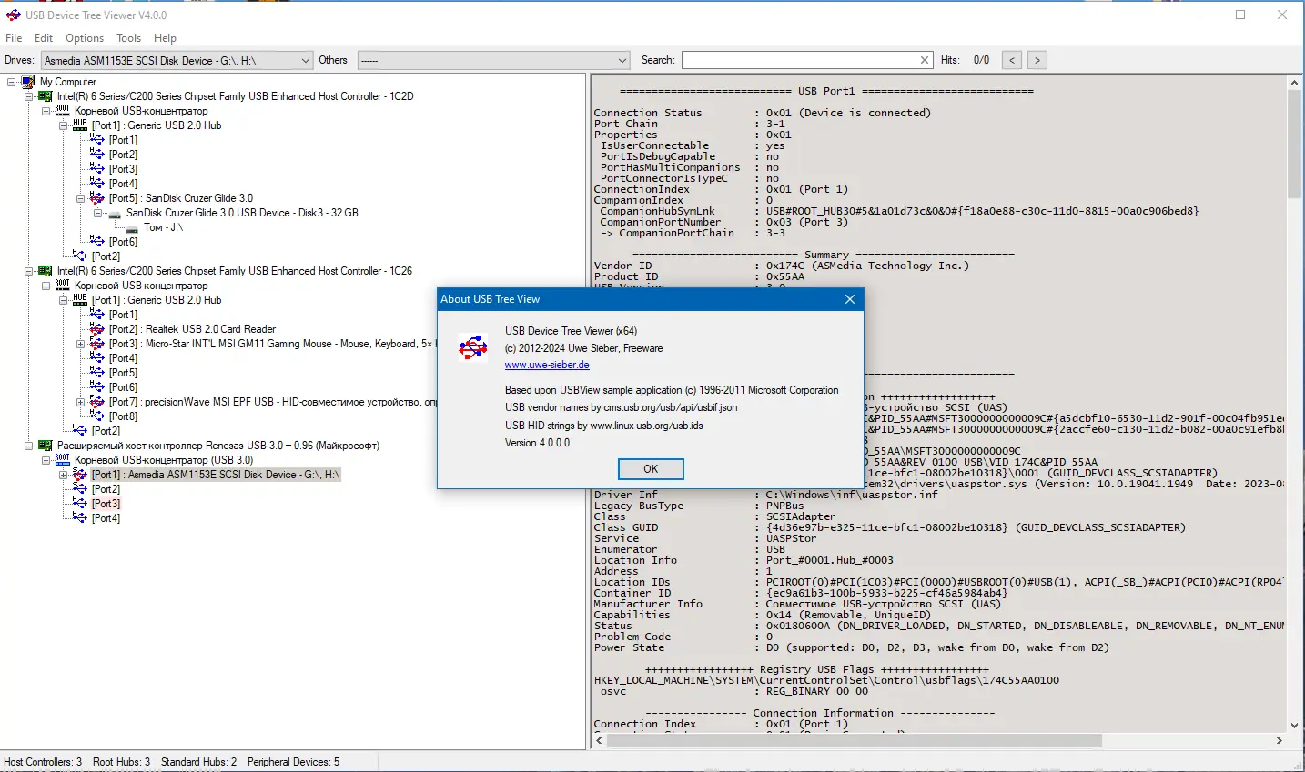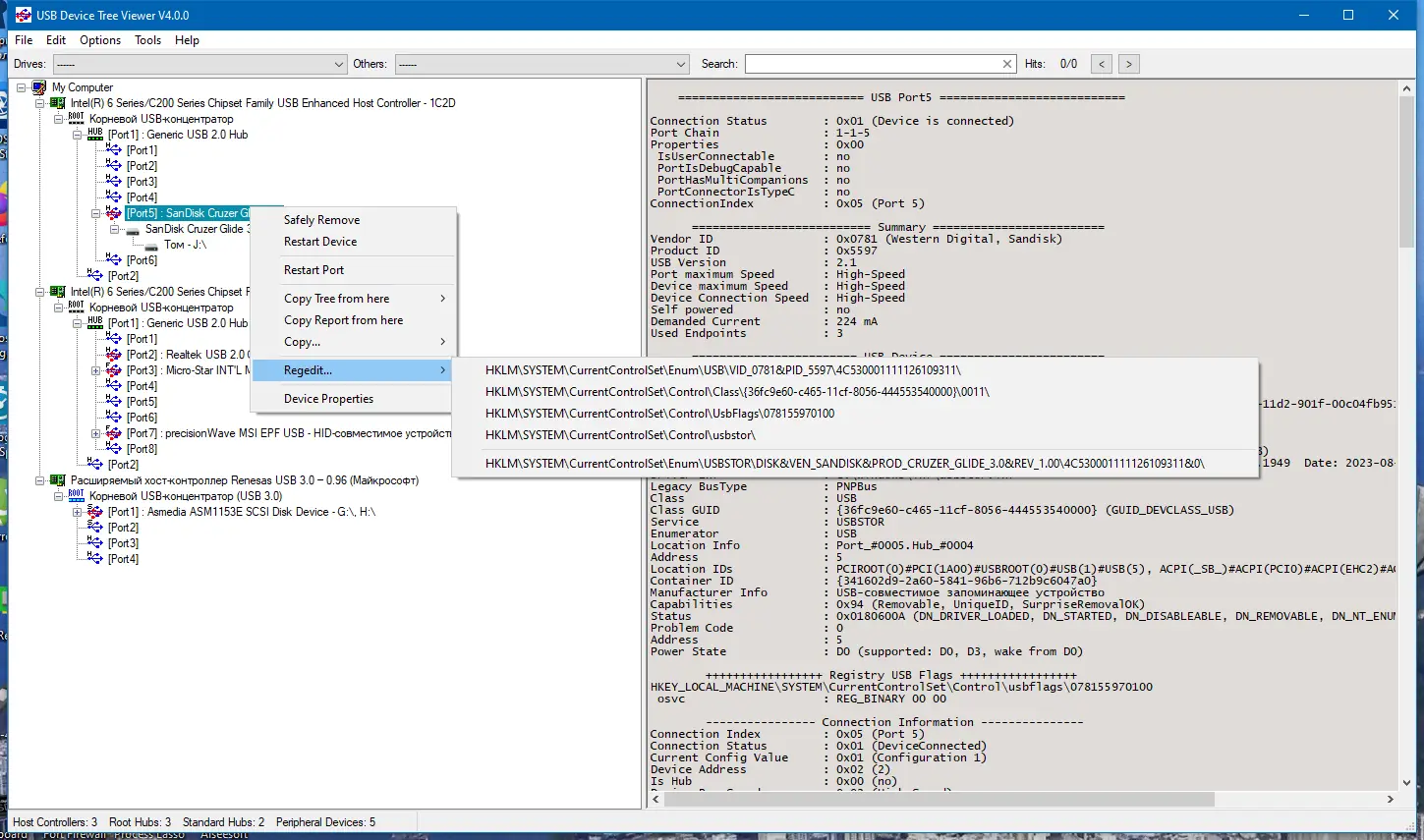 Работа с USB Device Tree Viewer