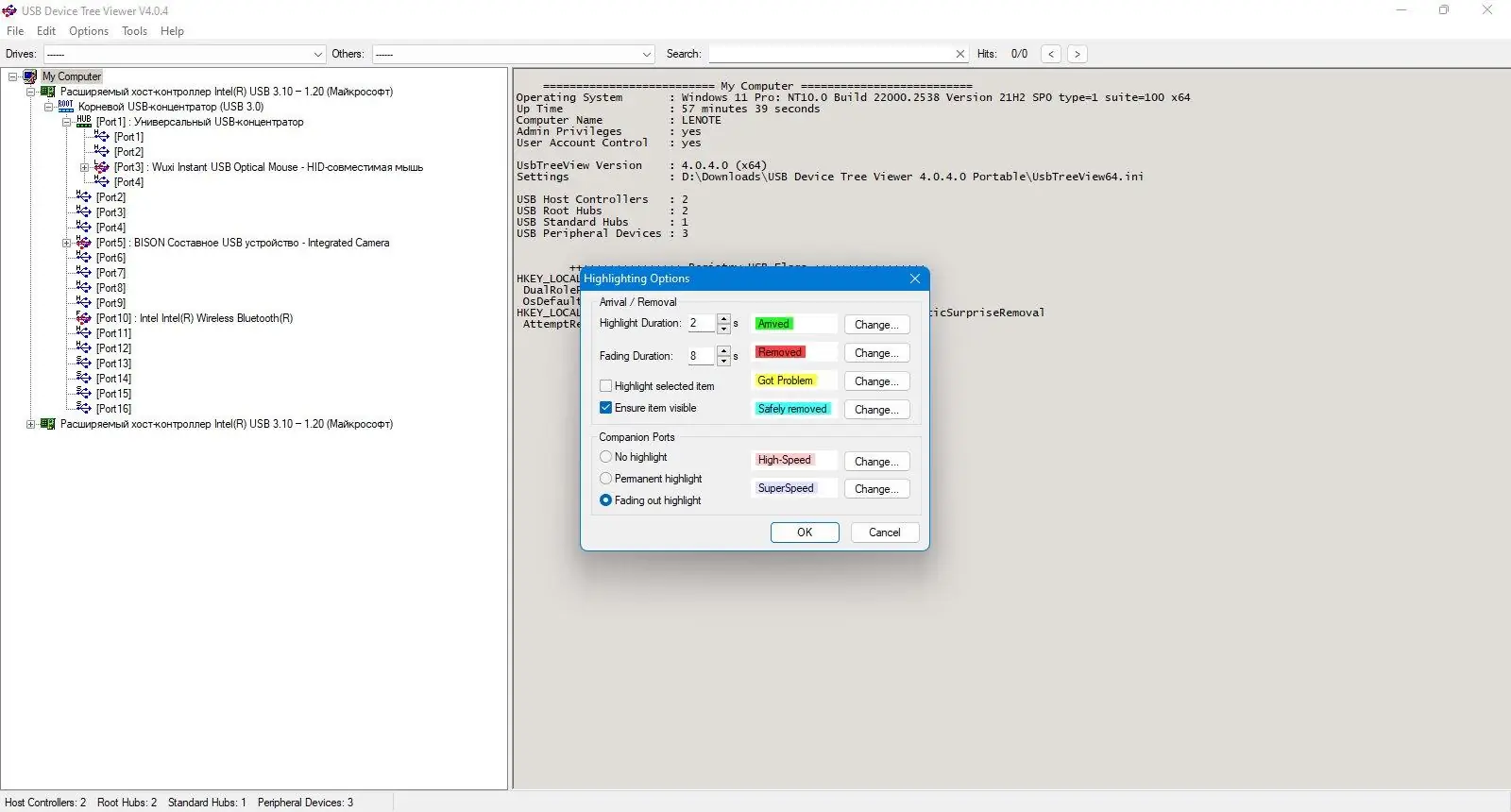 - Полная визуализация USB-иерархии с возможностью быстрого поиска