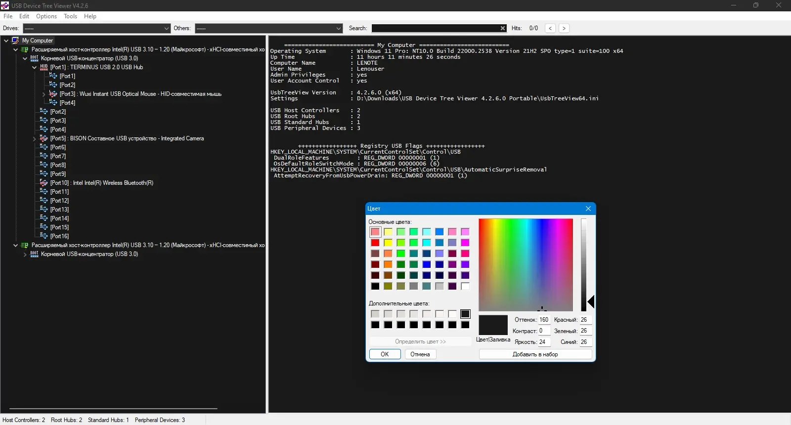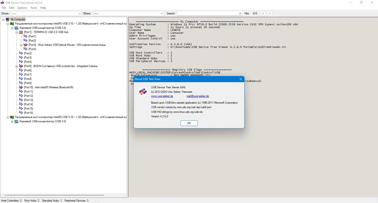 USB Device Tree Viewer — это портативная утилита для детального анализа подключённых USB-устройств, хабов и портов с отображением всей иерархии в виде удобного древовидного списка. Программа предоставляет расширенную информацию о каждом элементе, включая данные от диспетчера устройств, буквы дисков, COM-порты и параметры подключения, что делает её незаменимой при диагностике и настройке периферии.