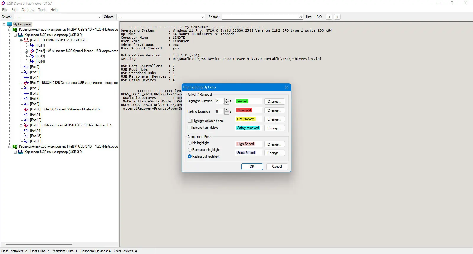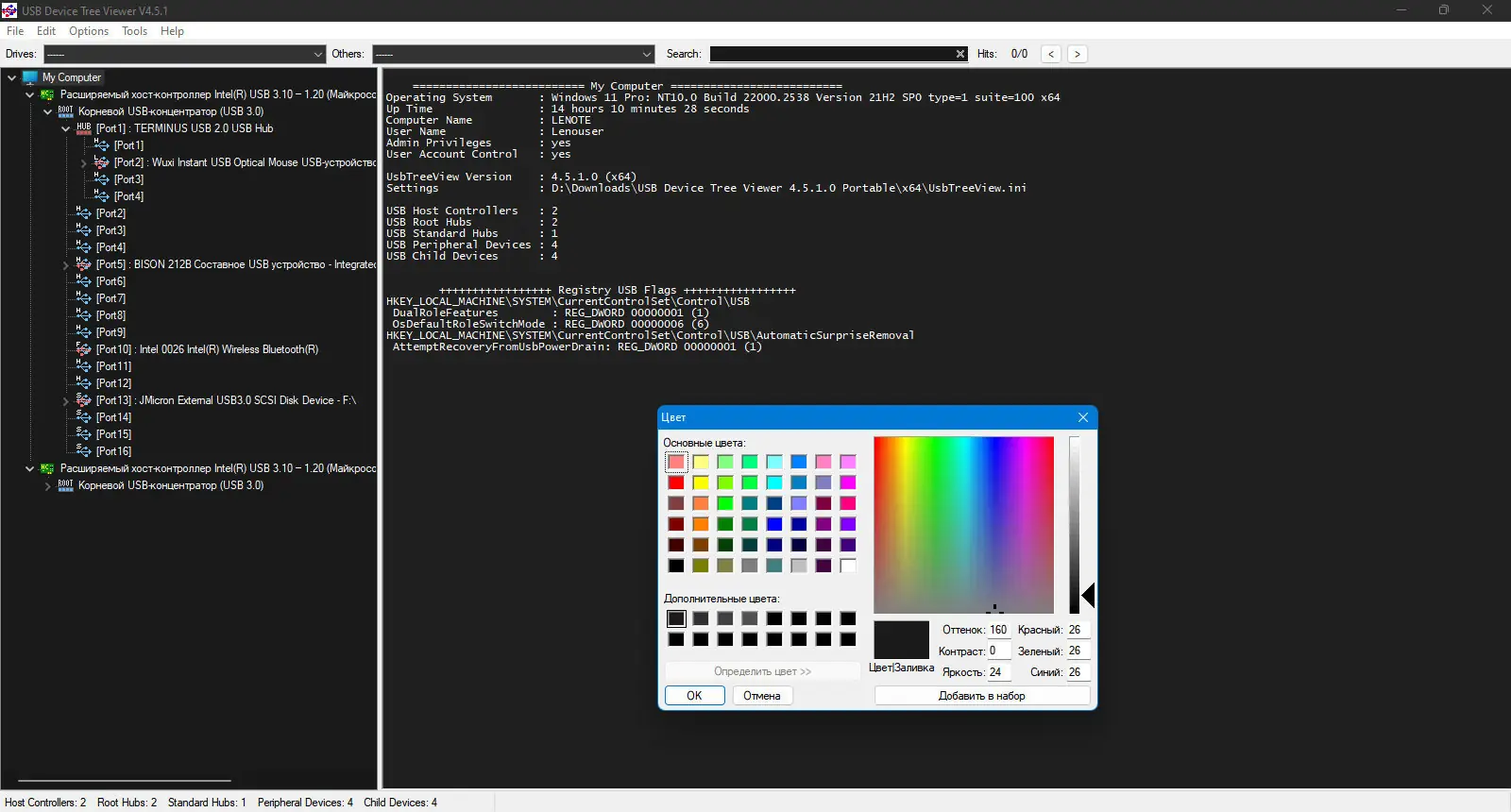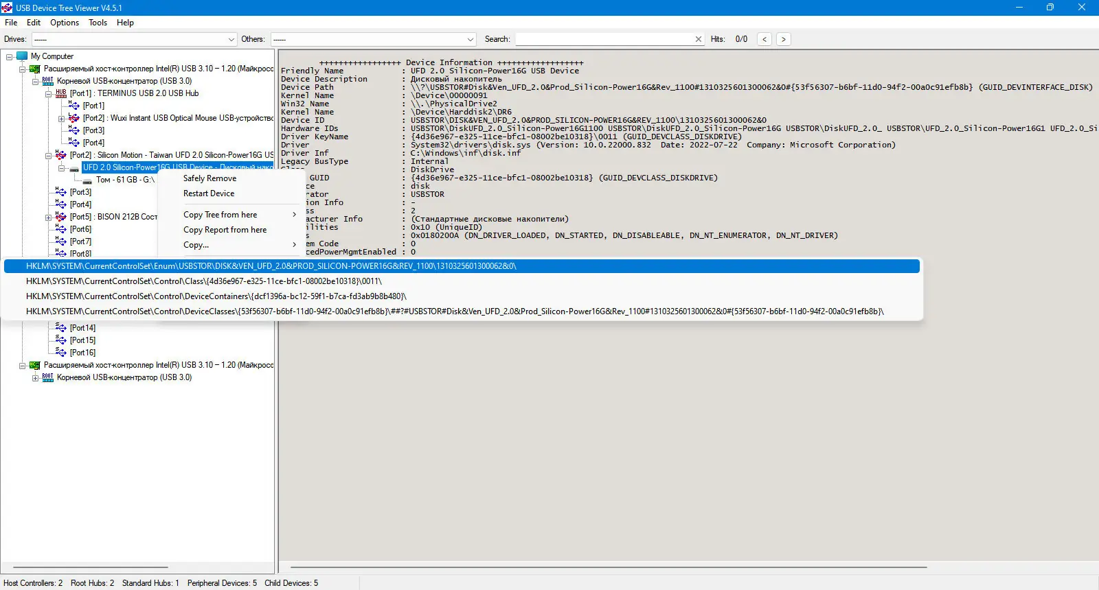 Работа с USB Device Tree Viewer