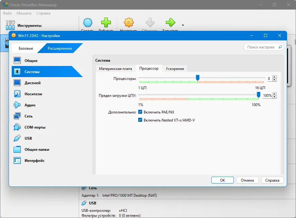 - Возможность подключения USB-устройств напрямую к гостевой системе.