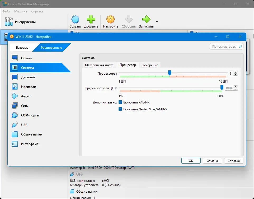 - Функция общих папок позволяет организовать быстрый обмен файлами между хостом и установленной гостевой ОС.