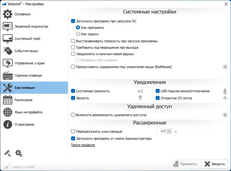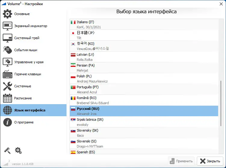 - Гибкая настройка управления громкостью через мышь, клавиатуру и края экрана.