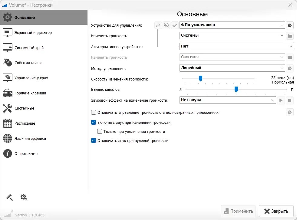 - Гибкая настройка управления громкостью через мышь и клавиатуру, включая поддержку горячих клавиш и событий.