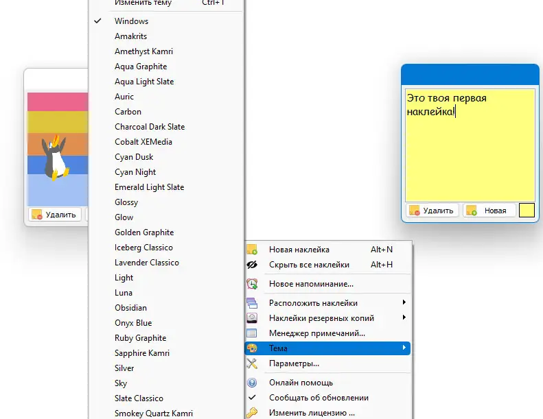 - Поддержка нескольких мониторов позволяет располагать заметки на любом из подключённых экранов в многодисплейной конфигурации.