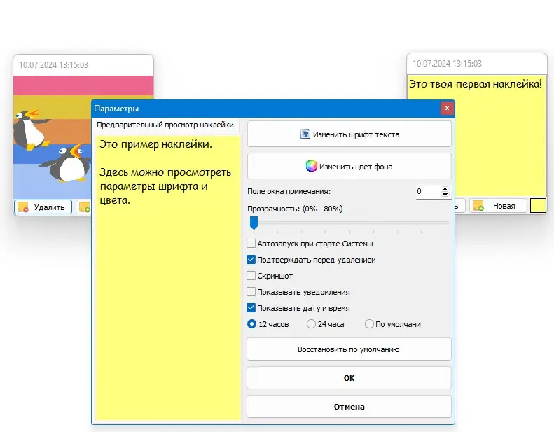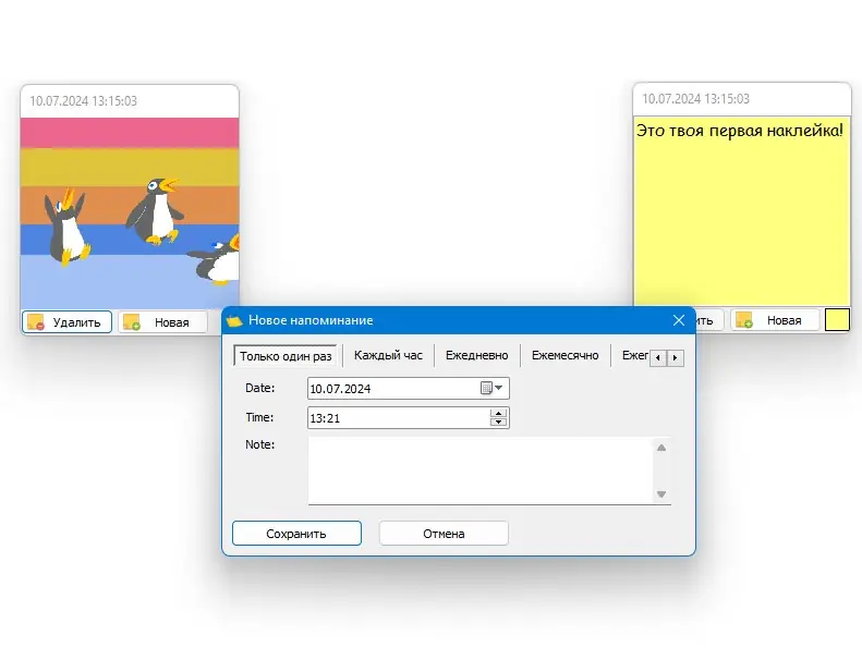 После установки или запуска портативной версии приложение интегрируется в системный трей, а его значок появляется в области уведомлений. Для создания новой заметки достаточно дважды щёлкнуть по иконке или использовать контекстное меню. В открывшемся окне можно вводить текст, вставлять изображения, изменять фон и размер. Заметки автоматически сохраняются, а напоминания настраиваются через встроенный планировщик. Для переноса данных между устройствами предусмотрена функция импорта и экспорта резервных копий.