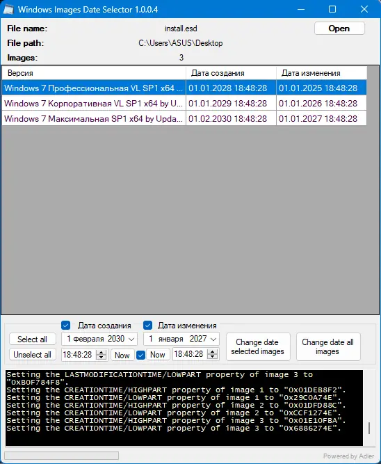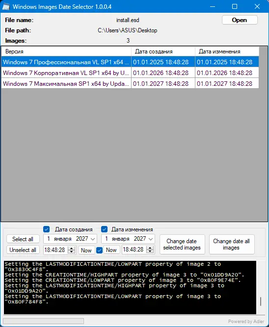 Использование утилиты не требует глубоких технических знаний. После запуска достаточно загрузить ISO-образ, и программа автоматически распознает все содержащиеся в нём редакции. Пользователь может выбрать, для каких именно сборок необходимо изменить дату, установив или сняв соответствующие флажки. Далее указывается нужная дата и время, после чего программа вносит изменения в атрибуты файлов. Процесс занимает считанные секунды, а результат сохраняется в исходном или новом образе. Поддержка пакетного режима позволяет обрабатывать несколько образов подряд, что особенно удобно при работе с крупными проектами.