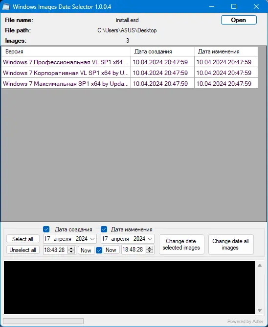 Windows Images Date Selector — это компактная утилита для изменения даты создания, изменения и времени в файлах образов Windows, включая форматы .WIM, .ESD и .SWM, интегрированные в ISO-образы. Программа позволяет точно настраивать временные метки как для всех редакций системы, так и для отдельных сборок. Поддержка портативного режима делает её удобной в использовании без необходимости установки.