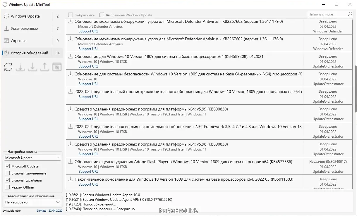 - Поддерживает скрытие нежелательных обновлений, предотвращая их автоматическую загрузку