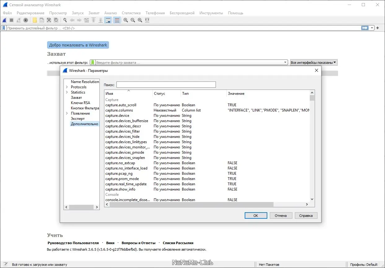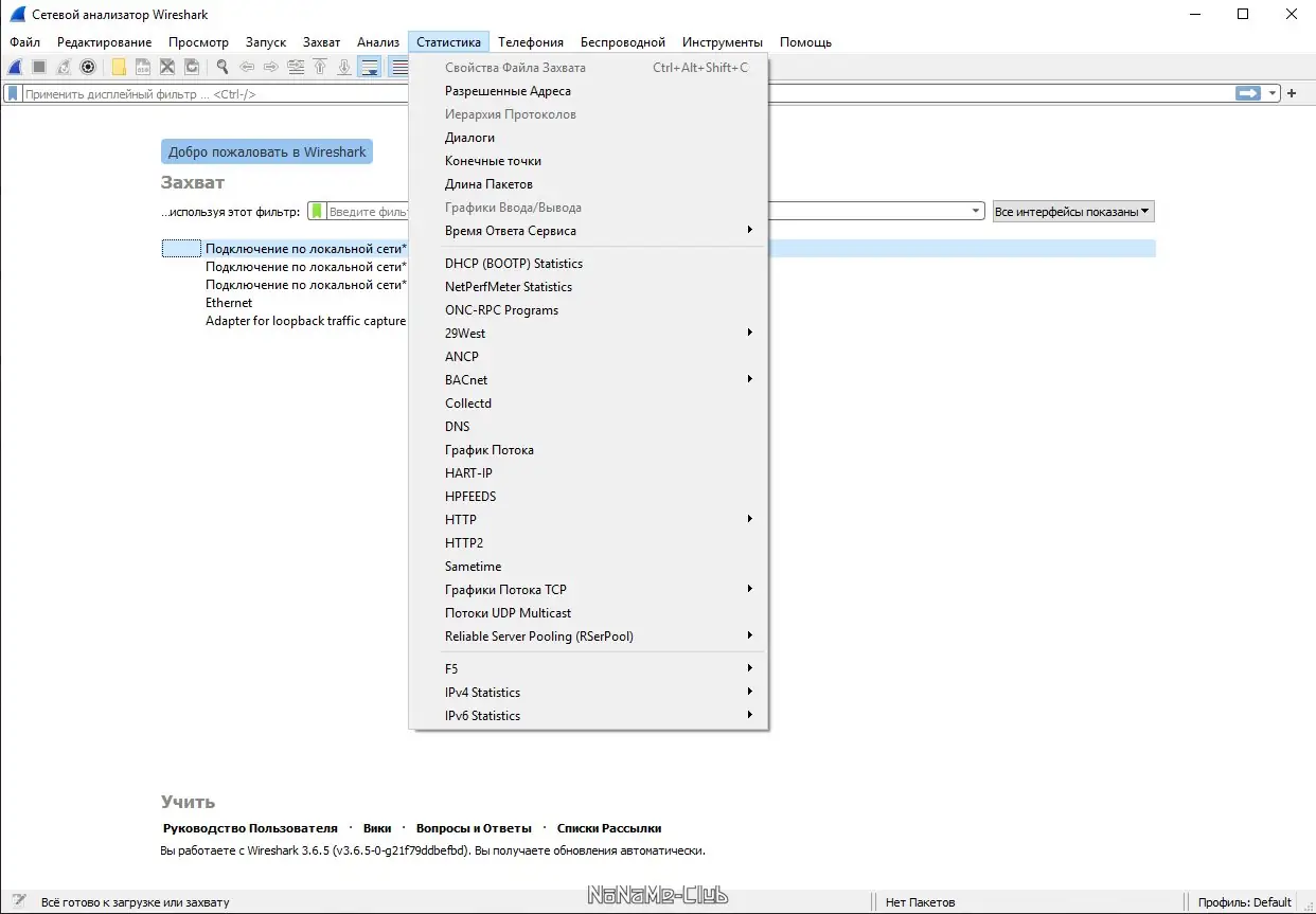 - Программа позволяет захватывать пакеты с различных типов сетей, включая Ethernet, Wi-Fi, PPP и Token-Ring.