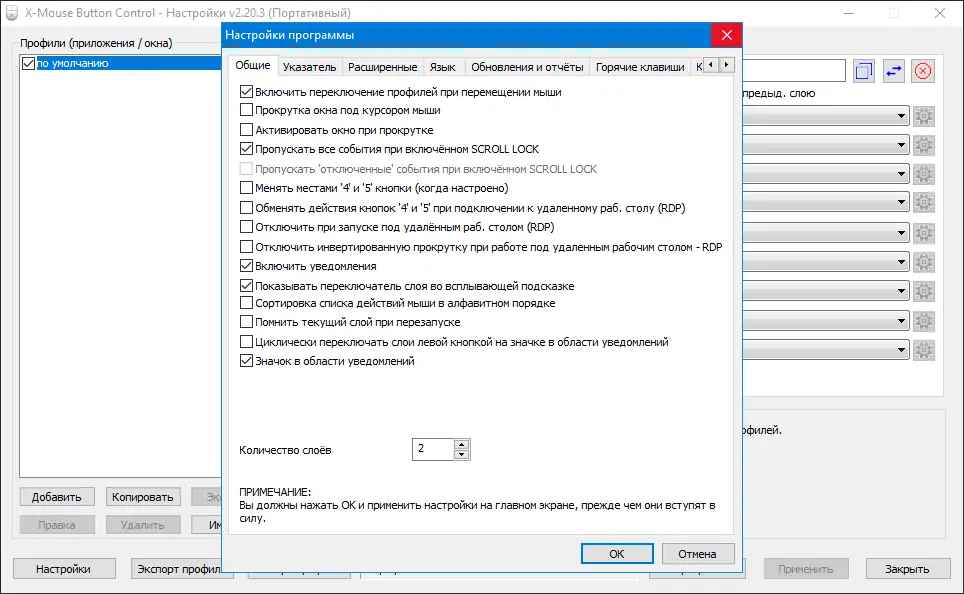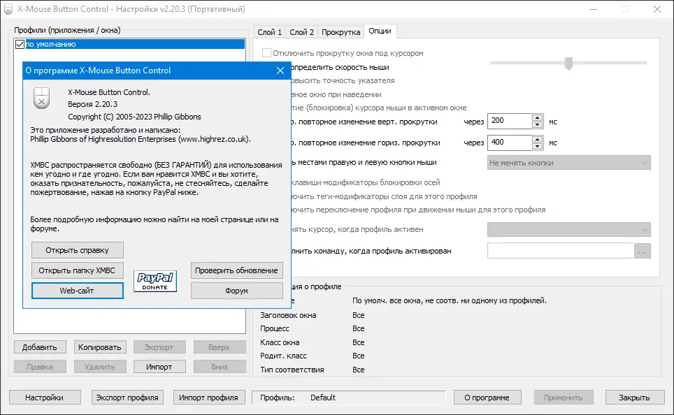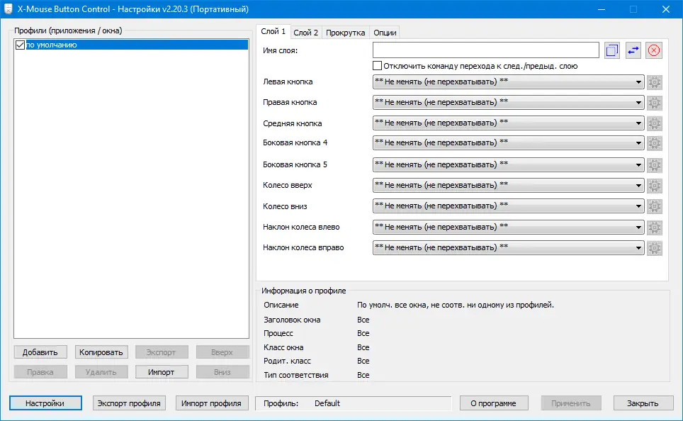 X-Mouse Button Control — это мощное приложение для перенастройки поведения кнопок мыши в операционной системе Windows. Программа позволяет создавать индивидуальные профили под конкретные приложения, настраивать до пяти слоёв конфигурации и изменять реакцию мыши в зависимости от активного окна. Поддержка тонкой настройки прокрутки, горячих клавиш и переназначения кнопок делает её незаменимой для пользователей, стремящихся к максимальному контролю над устройством ввода.