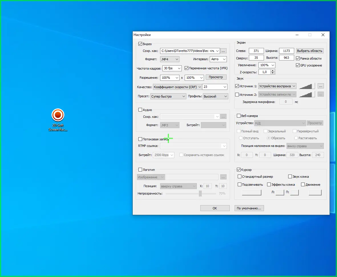 ZD Soft Screen Recorder — это мощное программное обеспечение для захвата видео с экрана компьютера, поддерживающее запись в высоком качестве с одновременным сохранением звука с микрофона, системных аудиоканалов и изображения с веб-камеры. Программа подходит как для создания обучающих материалов, так и для записи игрового процесса, вебинаров, онлайн-встреч и трансляций в реальном времени.